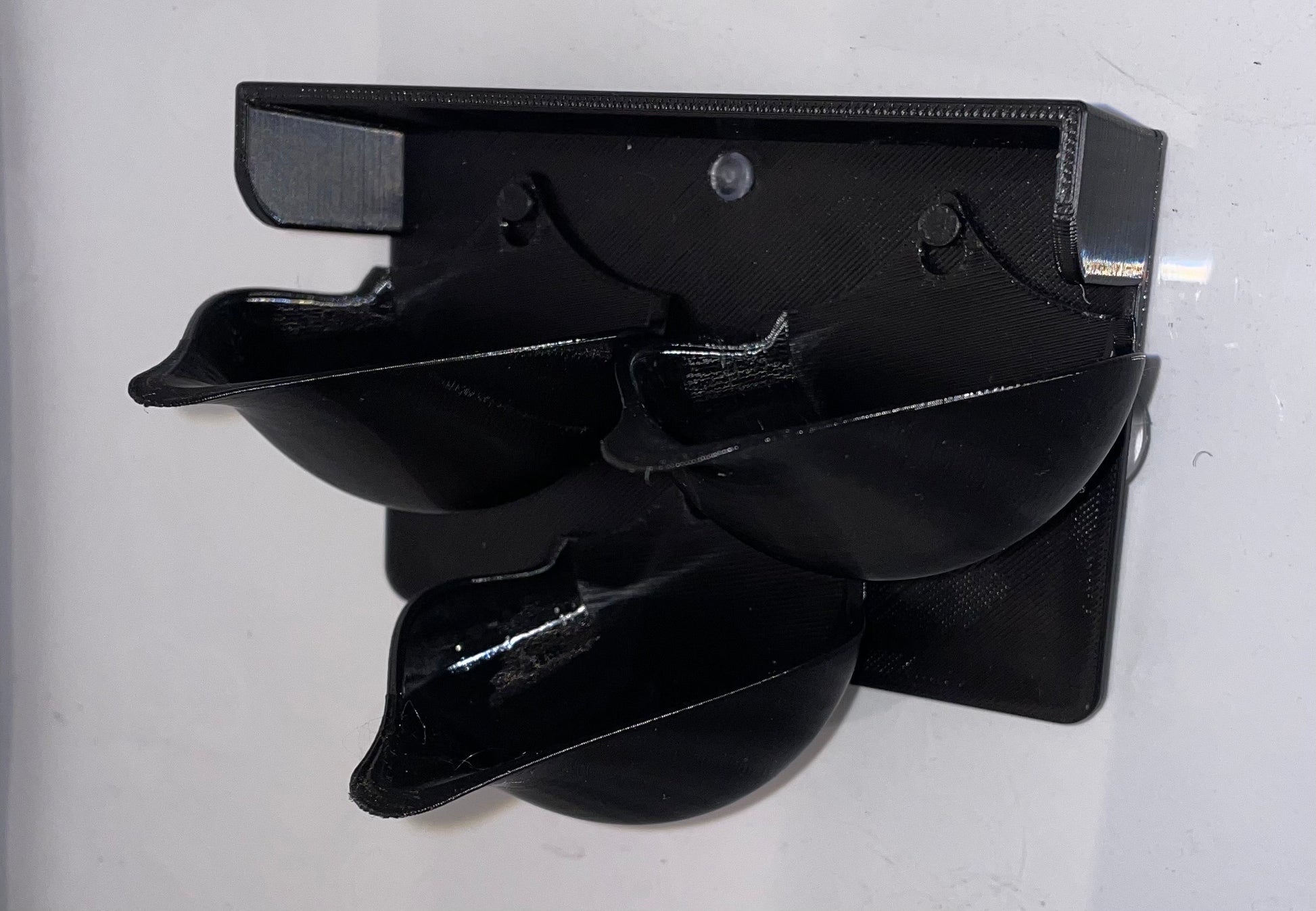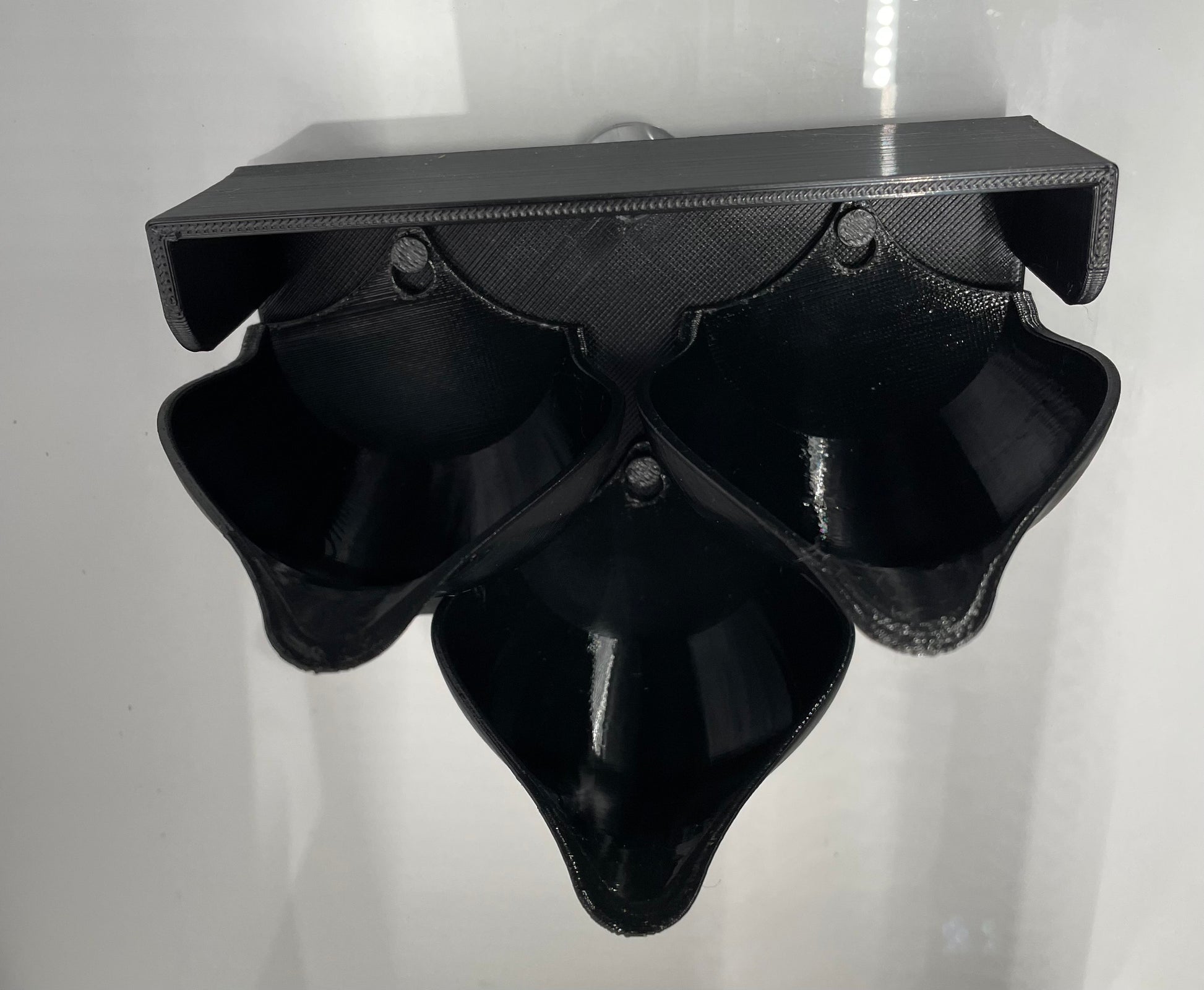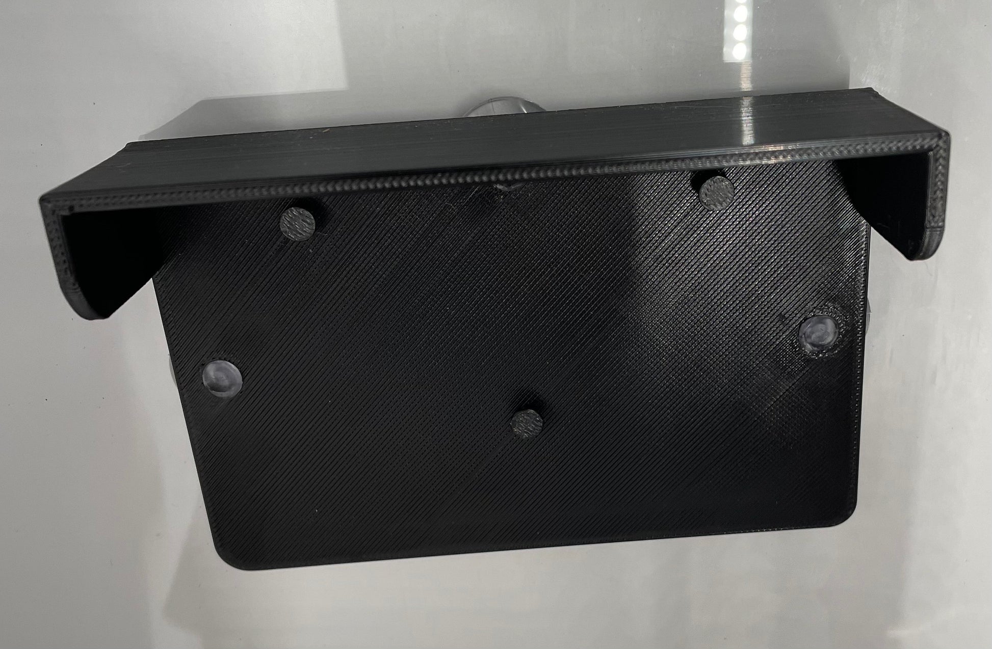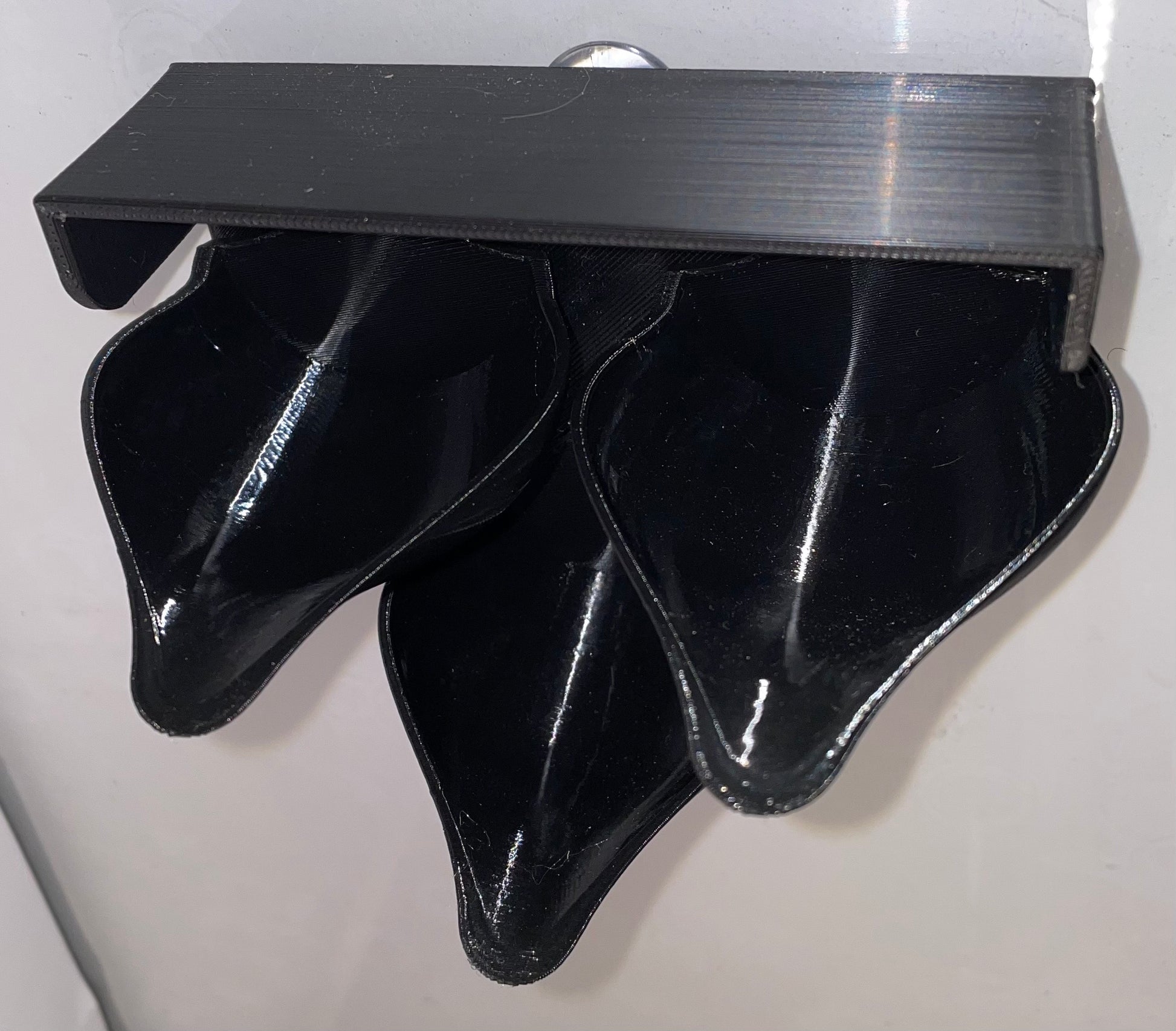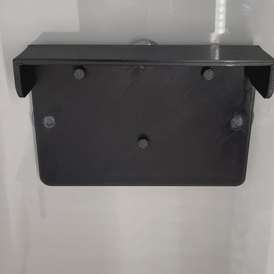 Our solution was a hooded mount with removable pools. The hood and the dark color of our Tadwalls provide privacy and security for the frogs, allowing them to feel safe while laying and tending to their eggs. The removable pools allow you to remove a single clutch from the tank for monitoring, and replace it with a new pool without fighting suction cups. A slight indention on the tops of the pegs ensure your pools will not fall off, and the back of the wall is secured to glass with 3 suction cups.