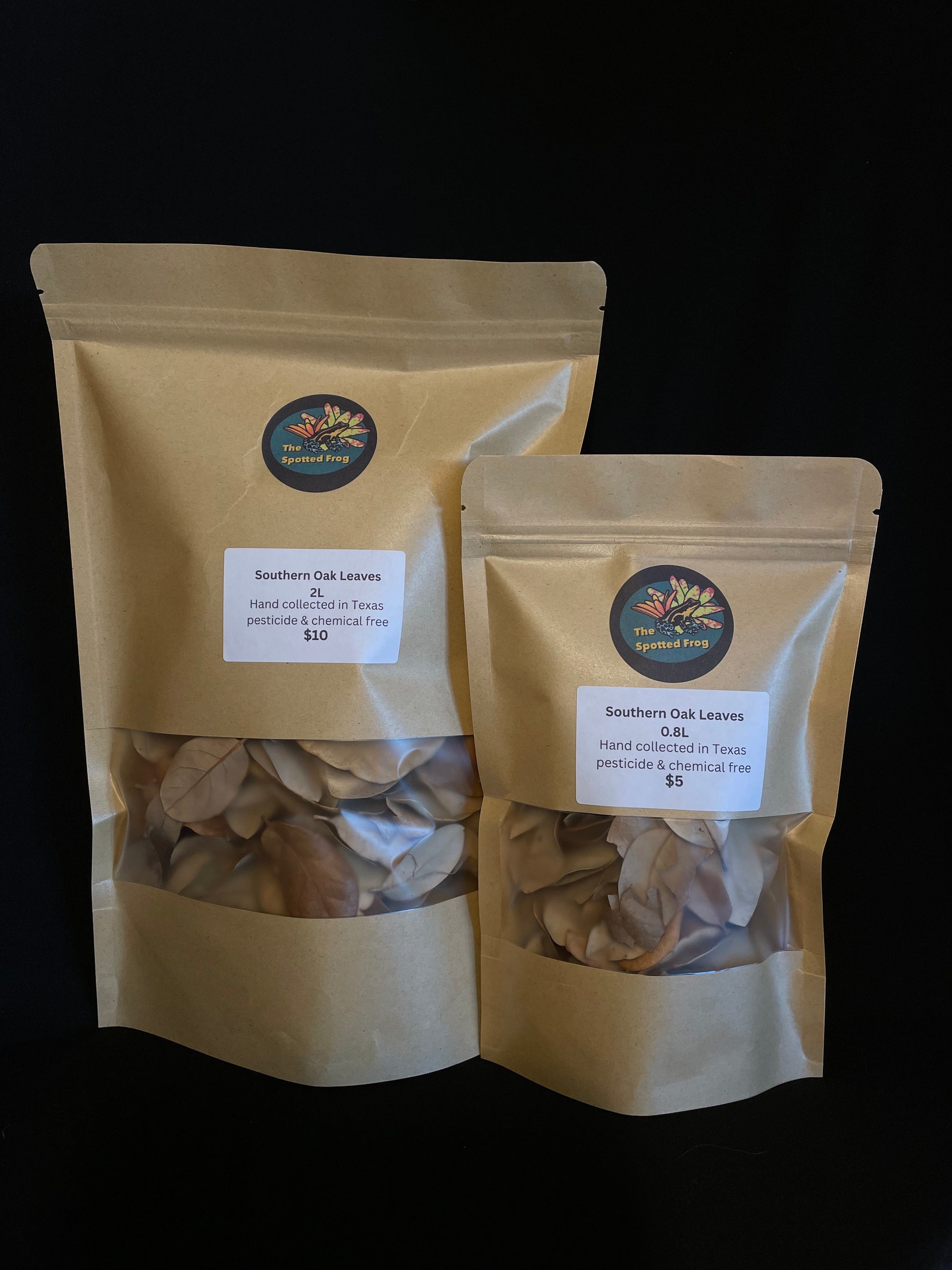These Southern Live Oak leaves have been hand-collected to ensure each one is nearly blemish-free. Collected in Texas on a family farm with no chemical use for over 100 years. These leaves are ready for your terrarium with no hassle required. Leaf litter is essential for the ideal bioactive terrarium to provide cover for inhabitants and nutrition for your clean-up crew, such as isopods and springtails. Bag weight may vary slightly.